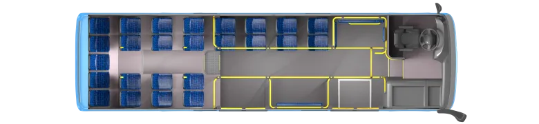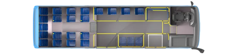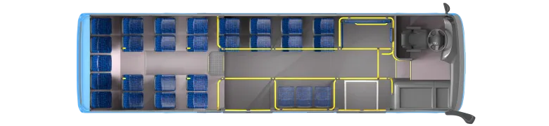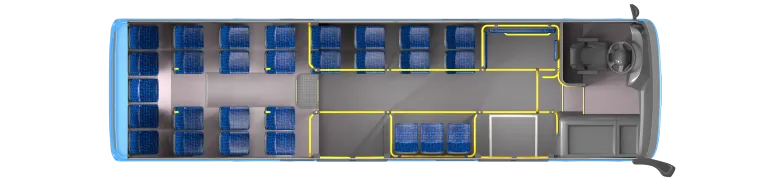В салоне автобуса реализована система «Чистый пол» за счет крепления кресел и поручней к боковине кузова. Данное решение позволяет быстро и эффективно осуществлять уборку салона.
