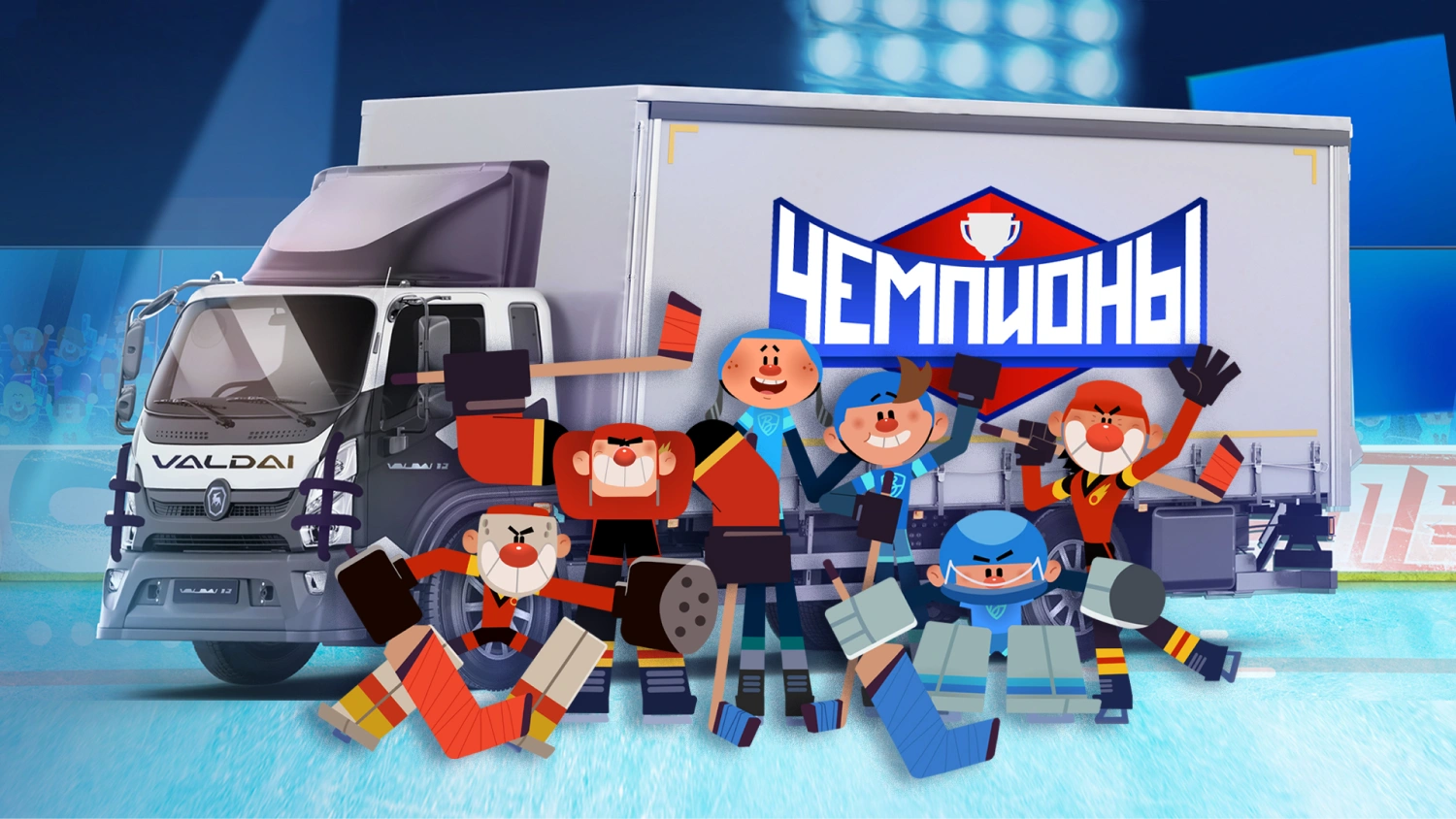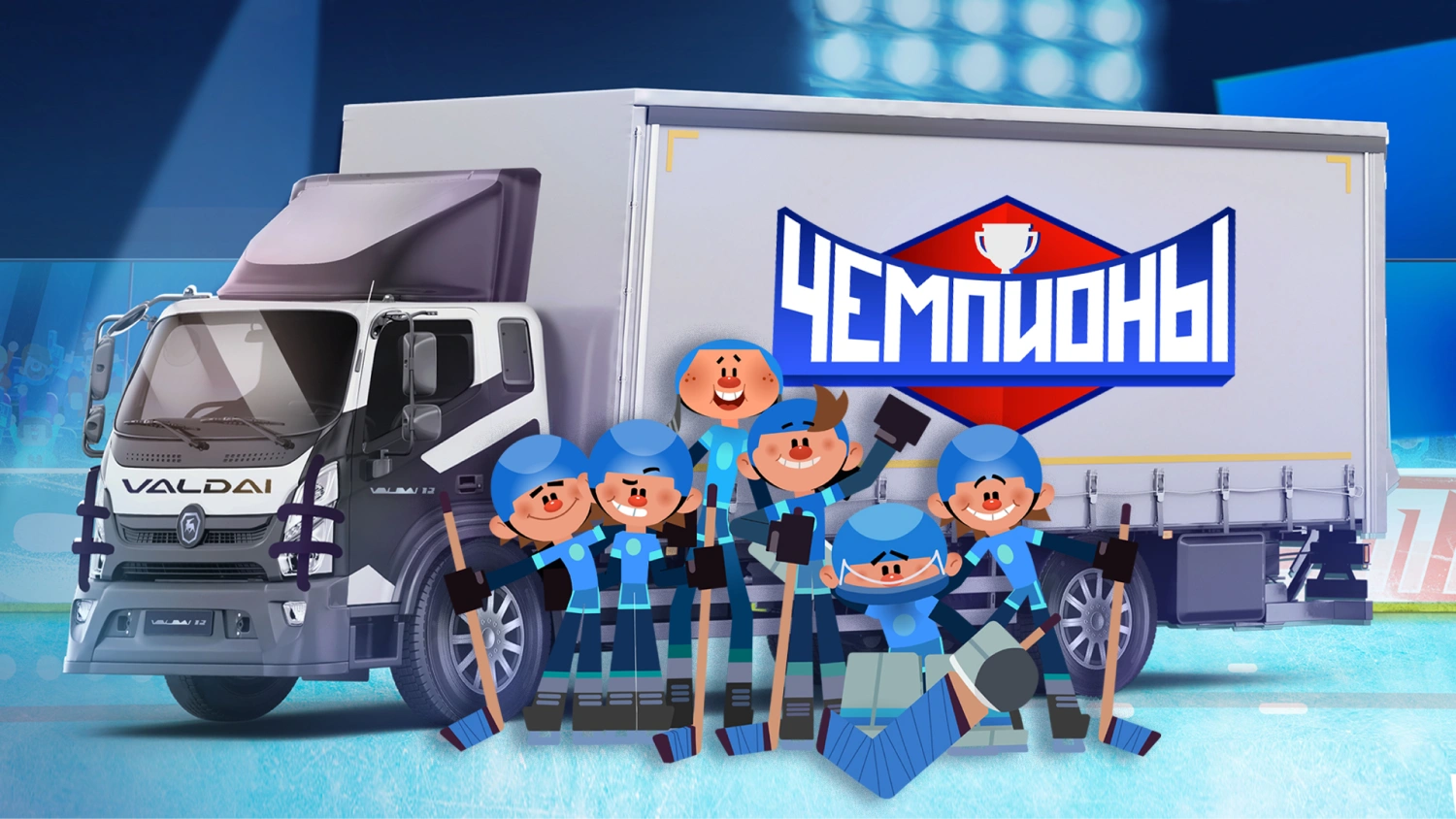 31 декабря на телеканале «Карусель» состоится премьера спортивного анимационного мультсериала «Чемпионы», созданного киностудией Союзмультфильм. Проект поддержали Минспорта России, Континентальная хоккейная лига, портал «Чемпионат» и группа компаний «Современные транспортные технологии» (ГК «СТТ»). Один из героев мультфильма — грузовик «Валдай».